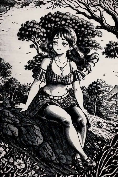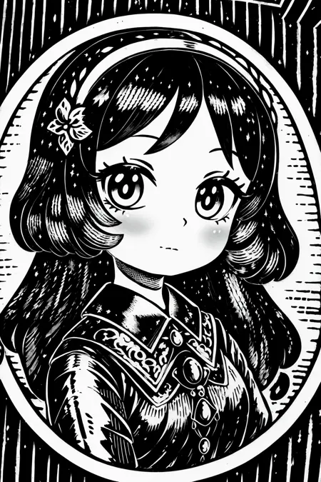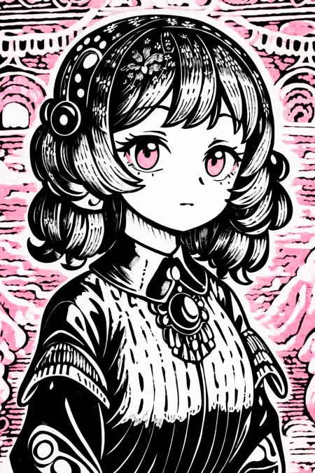 미세한 디테일 처리에 약간 어려움을 겪습니다. 아마도 이것이 기본적으로 목판화 스타일에 더 가까운 이유일 것입니다. 목판화는 판화나 조각판화보다 두꺼운 선을 주로 사용하기 때문입니다. 이는 SD1.5로 학습되었기 때문에 발생하는 한계라고 생각하며, 해결 방법은 잘 모르겠습니다.
