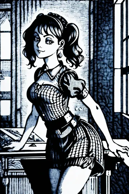 这个 LoRA 会为你的作品赋予一种复古的木刻/蚀刻/雕刻印刷艺术风格。显然,这三种艺术形式并不完全相同,而这个 LoRA 更偏向于木刻风格(可能是因为触发词)。