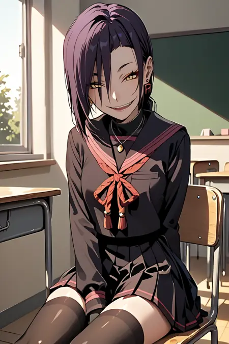 单辫,发铃,校服,黑色serafuku,黑衬衫,长袖,黑手套,黑裙子,黑色大腿,耳环,