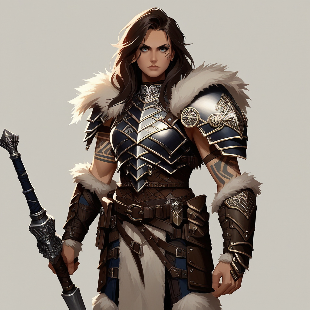 オプション:バーバリアン、毛皮のトリム、肩armor、ベルト、ピアス、タトゥー、 armor、腹筋、二頭筋、笑顔