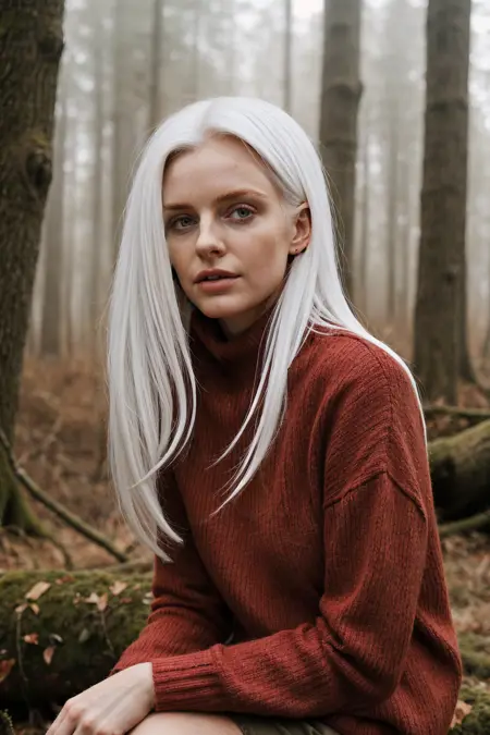 RAW photo of Muirgheal MacCarrick with sweater, red hair, Photorealistic, Hyperrealistic, Hyperdetailed, detailed skin, soft lighting, subsurface scattering, realistic, masterpiece, best quality, ultra realistic, 8k, Intricate, High Detail, film photography, soft focus