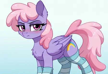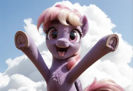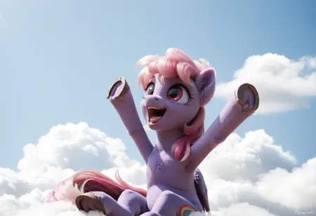 rainbowshining, hooves in air, waving arms, underhoof, front legs in air, looking up, happy, joy, open smile