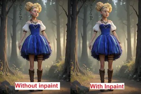 불행히도 영화에서 그녀의 전신이 Clearly 보이는 장면이 매우 적고, 얼굴도 명확히 보이지 않습니다(카툰의 화질은 4K라도 매우 낮습니다). 따라서 전신 이미지를 얻기 위해 Inpaint를 사용해야 합니다. 이 결과를 얻기 위해 저는 이틀 동안 10~15번의 시도를 했으며, 따라서 지금으로서는 이보다 더 나은 결과를 얻을 수 없습니다(아직!).