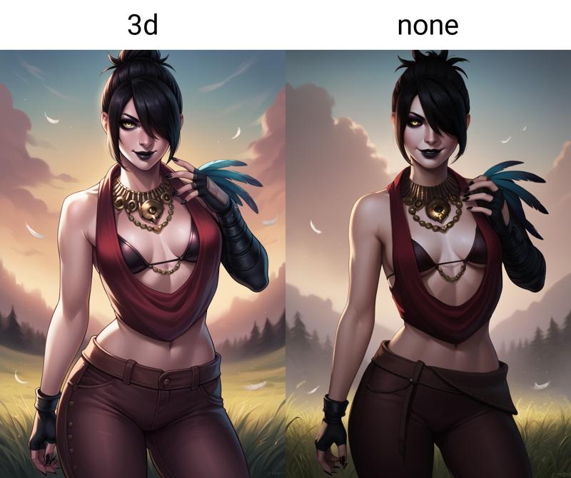 NSFW 콘텐츠에 3D 효과를 원하지 않는다면 negs에 3d를 넣는 것을 추천합니다.