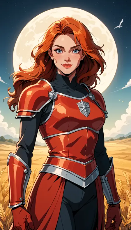 示例:score_9, score_8_up, score_7_up, 西方漫画, 人物肖像, 明日香·兰格雷·索丽亚, 可爱、诱惑、纯真、轻笑:0.3, 饱满嘴唇、纤细身材、长发、飘动长发、红色插头服、日落、湖泊背景、景深、动态角度、时尚摄影、锐利、超精细:1.15