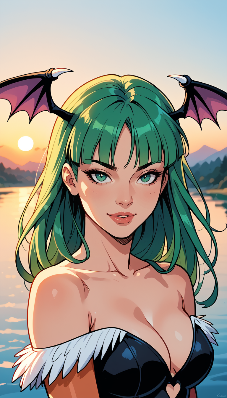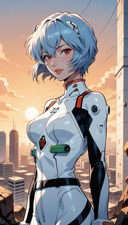EXAMPLE: score_9, score_8_up, score_7_up, Western Comics, Portrait, Asuka Langley Soryu, cute, seductive, innocent, light smile:0.3, plump lips, slender body, long hair, floating hair, red plugsuit, sunset, lake background, depth of field, dynamic angle, fashion photography, sharp, hyperdetailed:1.15