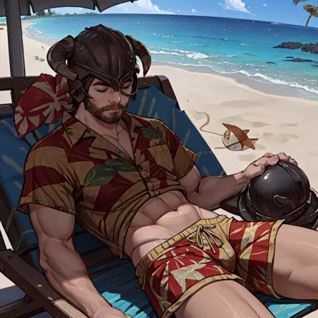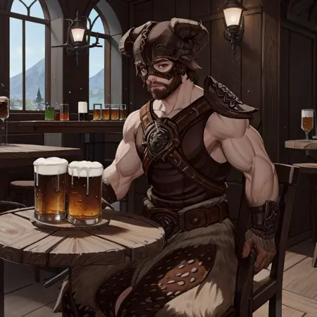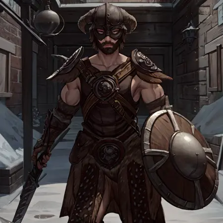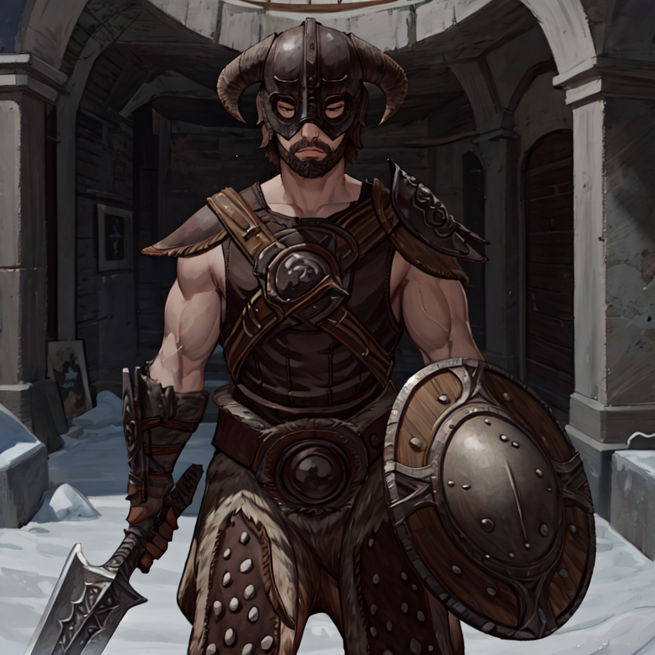 このLoRAは、私が作成したスカイリムのキャラクターを用いて訓練されました。そのため、ヘルメットを外した後の顔は、私のオリジナル設定である、ハンサムなノルド男性です。