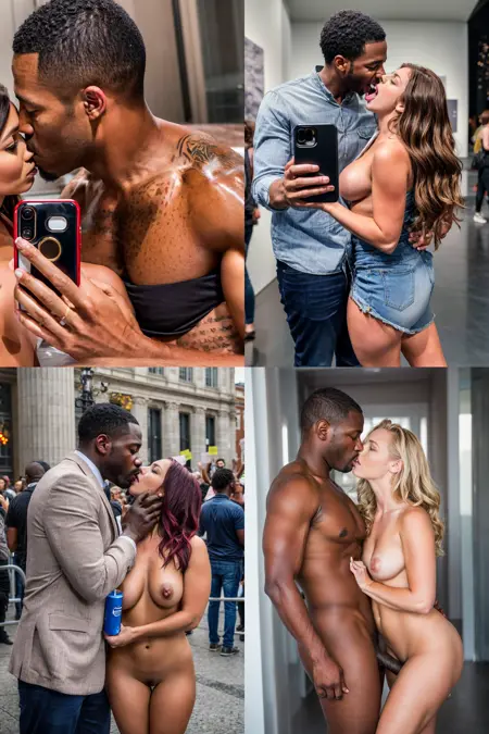 lora:ksslnskFT15:1 {ksslnskft, }{1girl, }{1boy, }{hetero, }{dark-skinned male, }{realistic, }{interracial, }{kiss, }{penis, |||}{erection, |||}{completely nude, ||||}{french kiss, ||||}{couple, ||||}{navel, ||||}{pubic hair, ||||}{ass, ||||}{testicles, ||||}{male pubic hair, ||||}{standing, ||||}{tongue, ||||}{looking at another, ||||}{imminent kiss, |||||}{selfie, |||||}{phone, |||||}{cellphone, |||||}{fat, |||||}{smartphone, |||||}{open mouth, |||||}{holding, |||||}{flaccid, |||||}{holding phone, |||||}{female pubic hair, |||||}{sitting, |||||}{large penis, |||||}{hand on another's neck, |||||}{clothed female nude male, |||||}{clothes pull, |||||}{imminent penetration, |||||}{hand on another's face, |||||}{eye contact, |||||}{ass grab, |||||}{grabbing, |||||}