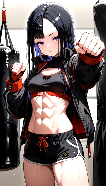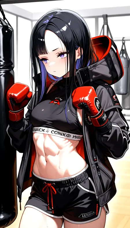オーバースペックプロンプト(Illust V2専用): eunhwa_nikke, overspec, absolutebra, absolutepan, グローブ, ショートパンツ, ジャケット, ベレー帽
