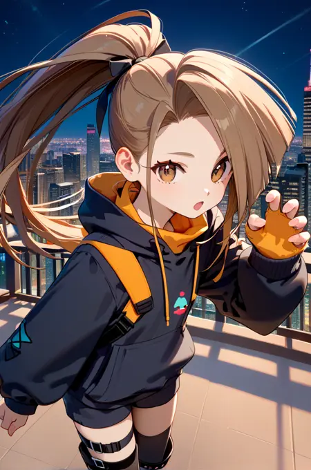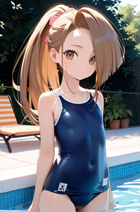 suzuBase, 갈색 머리, 갈색 눈, 긴 머리, 높은 포니테일,