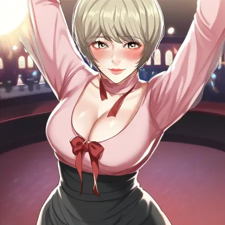 (( lora:sun-bin:1 , sun-bin, beautiful light brown eyes, clear eyes, bright pupils, beautiful eyes, beautiful light blonde hair, beautiful short bob haircut, bangs, huge and shaggy breasts, thin waist, wide hips, beautiful skin, natural beauty, extraordinary beautiful woman, attractive woman, super sexy woman, lustful body, sexy woman with seductive obscene body, sensual body, voluptuous body, sexy beauty, ))