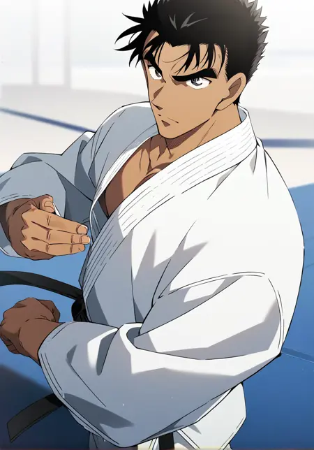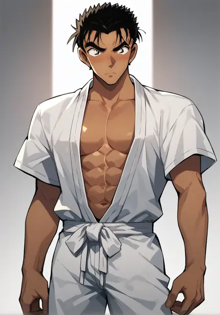 1boy,kyogoku_makoto,male focus,solo,black hair,dark skin,dark-skinned male,thick eyebrows,black eyes,short hair,
