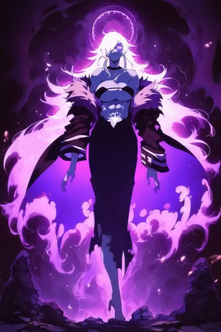 提示词:觉醒,影子,发光,光环,影子士兵,发光的眼睛,幽灵,紫色皮肤,黑色皮肤,发光皮肤,光环皮肤,烟雾皮肤,深色皮肤,阴影身影,朦胧飘渺,旋绕的烟雾,黑暗奇幻,超凡脱俗,