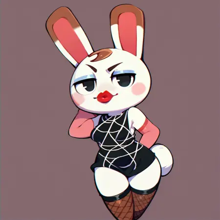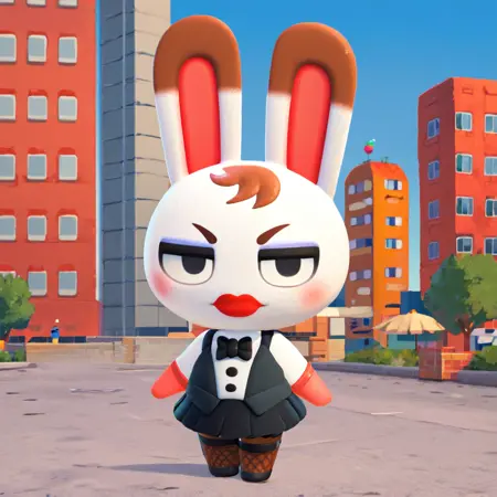 I trained Tiffany with her two different main outfits. Try "spider web print" for her traditional outfit and "tuxedo dress" + "bow tie" for her New Horizons look.