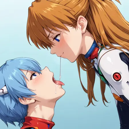 従属的な少女の口に支配的な少女が唾を吐きかけるレズビアンドミナチオン。主にクローズアップが使用されている。