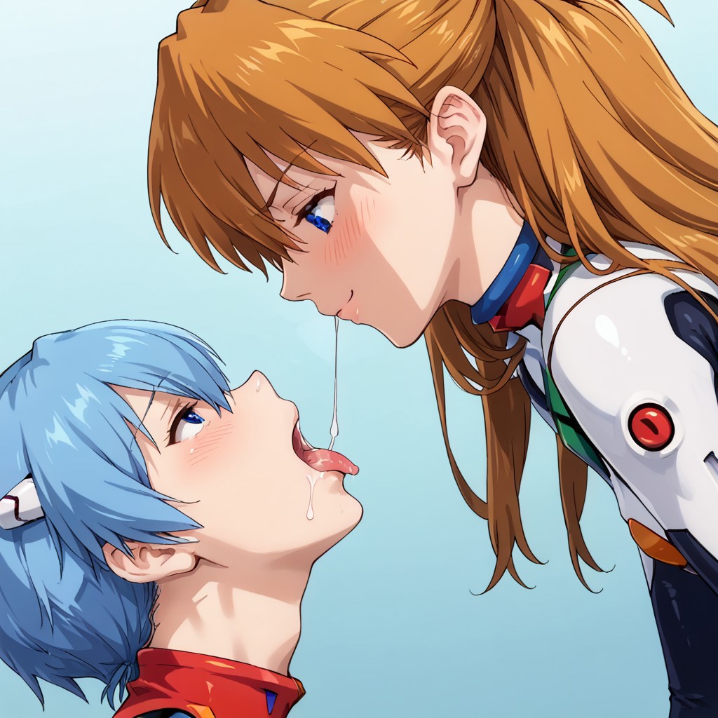 Spit_In_Mouth, Lesbian, saliva focus, 2girls, 첫 번째 소녀(spit, spits on tongue, dominatrix, top), 두 번째 소녀(slave, open mouth, accepts spit)