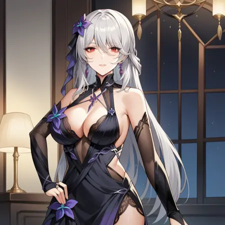 Disclaimer: Default dress can be inconsistent with coloring as Ai literally doesn't like asymmetrical clothes/two-tone clothes. Not much I can do here sadly.