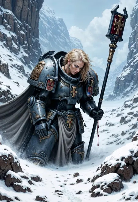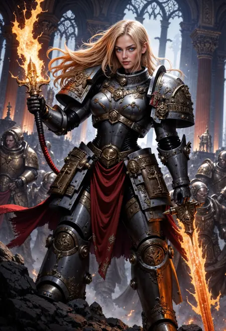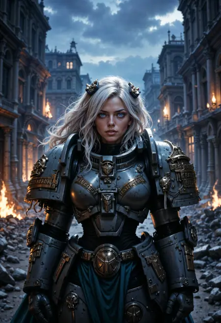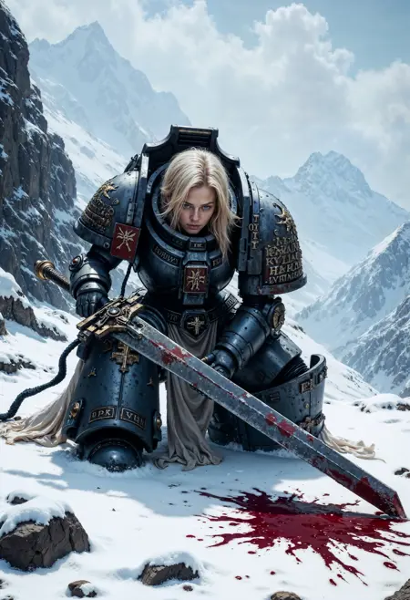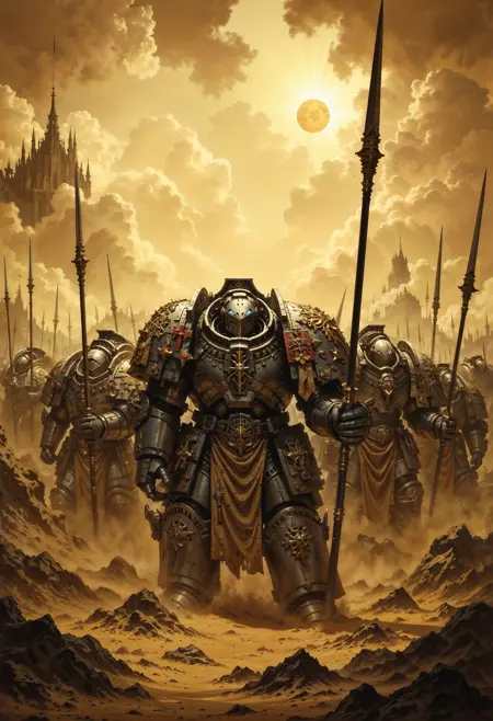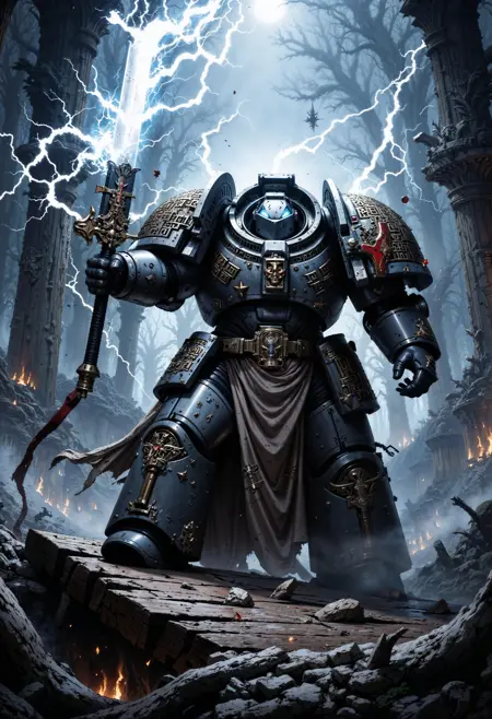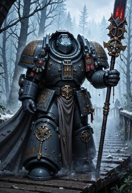 此LoRA适用于Pony Diffusion XL、illustrious和FLUX.1 [dev],旨在为你的角色赋予战锤40K世界中星际战士的动力装甲。