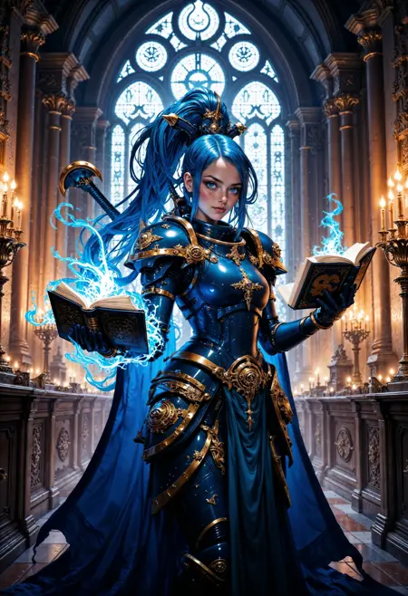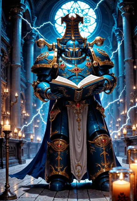 此LoRA适用于Pony Diffusion XL、illustrious和FLUX.1 [dev],旨在为你的角色赋予战锤40K世界中星际战士的动力装甲。