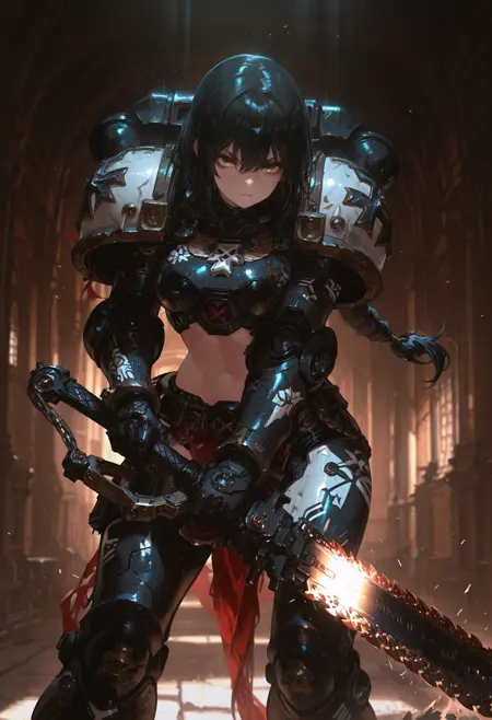 This LoRA is for Pony Diffusion XL, illustrious and FLUX.1 [dev], it's made to give your character the Space Marines power armor from the world of Warhammer 40K.