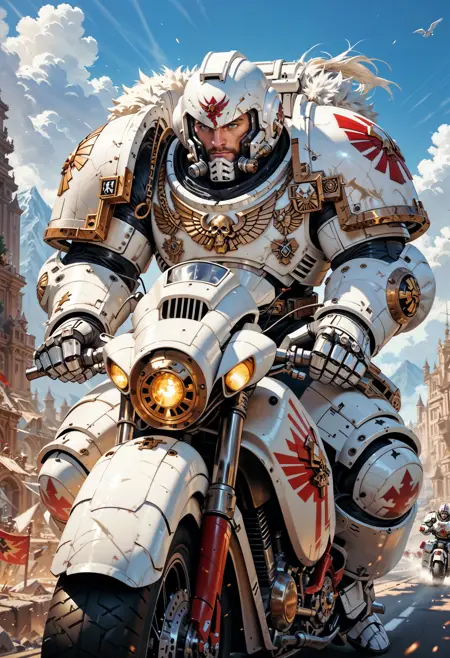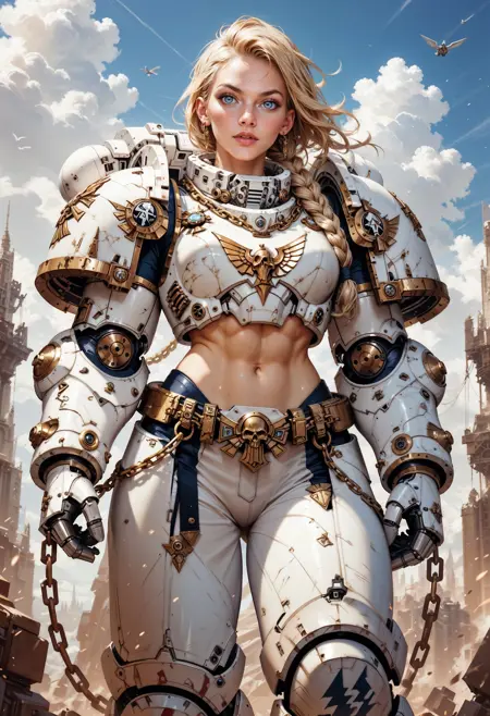 This LoRA is for Pony Diffusion XL, illustrious and FLUX.1 [dev], it's made to give your character the Space Marines power armor from the world of Warhammer 40K.