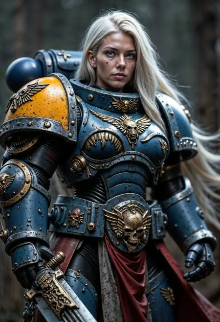 此LoRA适用于Pony Diffusion XL、illustrious和FLUX.1 [dev],旨在为你的角色赋予战锤40K世界中星际战士的动力装甲。