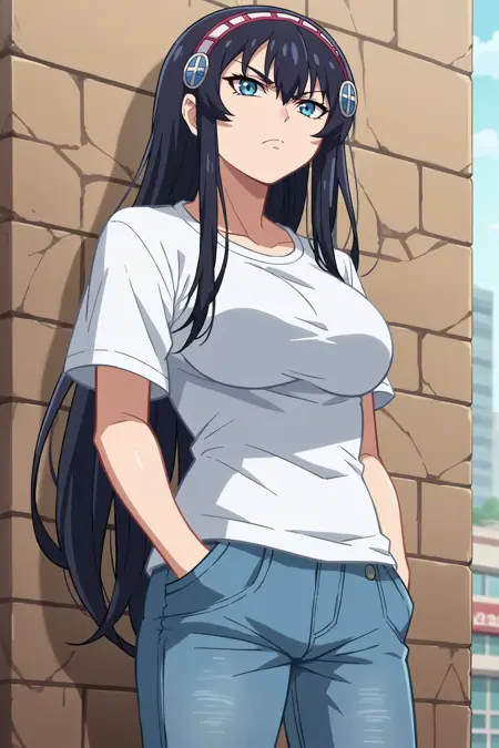 『ピーター・グリルと賢者の時間』のルベリア・サンクトス。Pony Diffusion V6 XL で学習済み。強度は0.8-1.0でテスト済み。