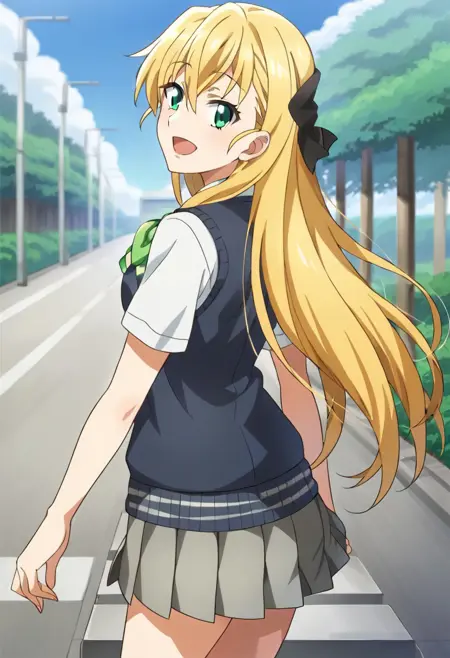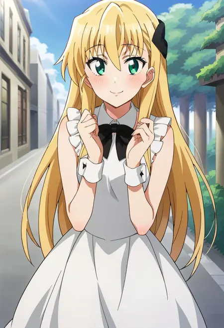 : tendou karen, 긴 머리, 금발, 녹색 눈