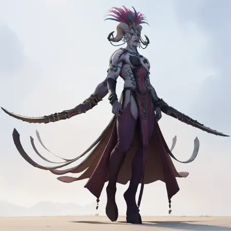 KeeperofSecrets, monster, horns, black sclera, pincers, multiple arms,