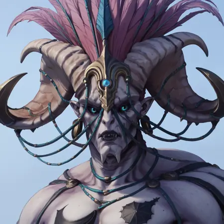 ExaltedKeeperofSecrets, monster, horns, black sclera, pincers, multiple arms,