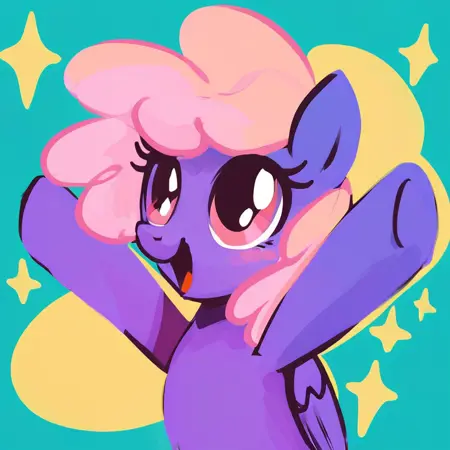 무지개 빛나는 LoRA. 항상 작동하지는 않으며, 때로는 캐릭터의 한 손만 위로 올라가고, 약간 과학습된 부분도 있습니다—훈련 이미지에서 너무 많은 요소를 계승하여 매우 딱딱하고 전혀 변형이 없습니다. 하지만 적어도 이 자세로 좋아하는 캐릭터를 재현할 수는 있습니다.