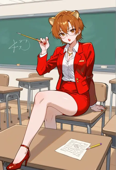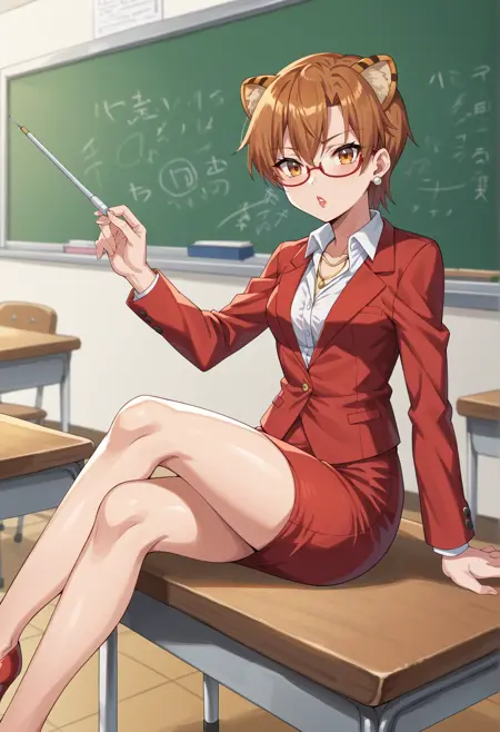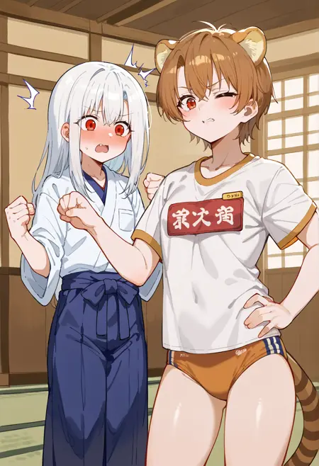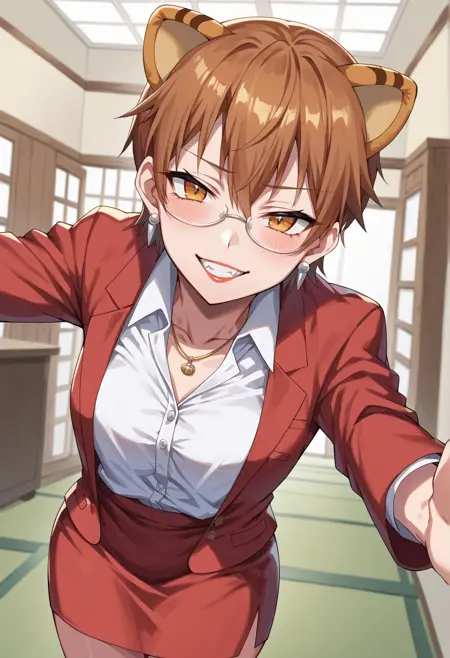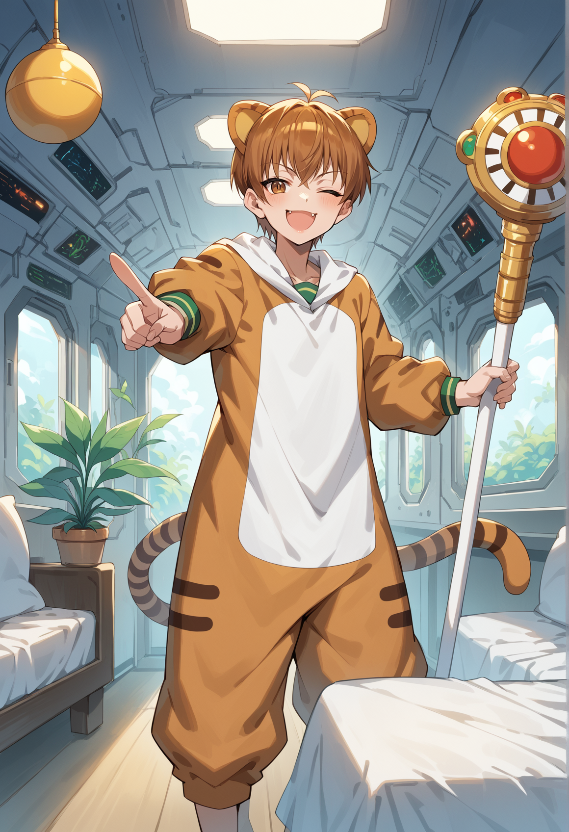 Asc2:ショートヘア、茶色の髪、茶色の目、動物の耳、動物の衣装、虎の尾