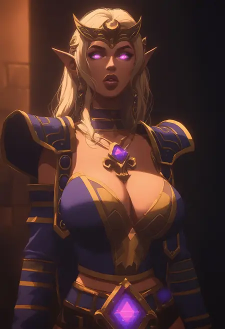 这是我第一次尝试训练一个LoRA,使用的是我魔兽角色的一些游戏内截图。除非与本网站上的血精灵LoRA配合使用,否则效果并不理想。我建议将强度设为0.5左右,并使用以下提示词: