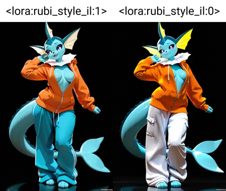 这是一个在 e621 上选取的图像集上训练的 LoRA,模型会生成更具卡通感和平涂色彩的图像。在“插画版”中,重点在于构图的改变。