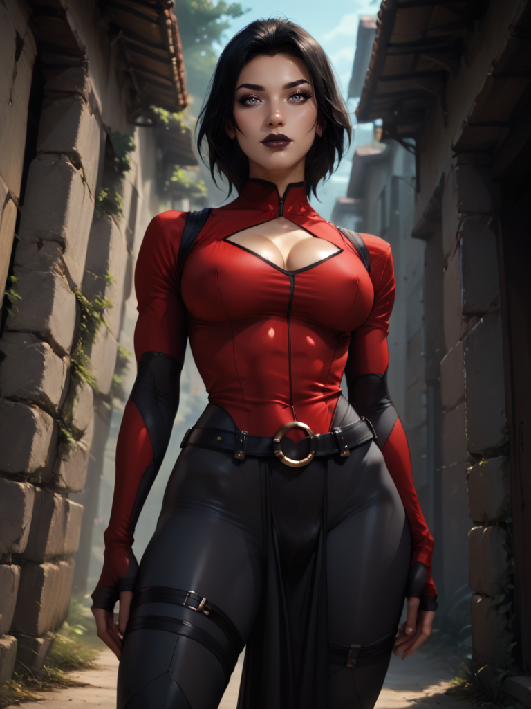 提示:西瓦,灰色眼睛,齐肩发,紧身衣,骨盆帘,战术长裤,腰带,齐肩发,服装裁剪,胸线裁剪,露指手套,口红,骨盆帘