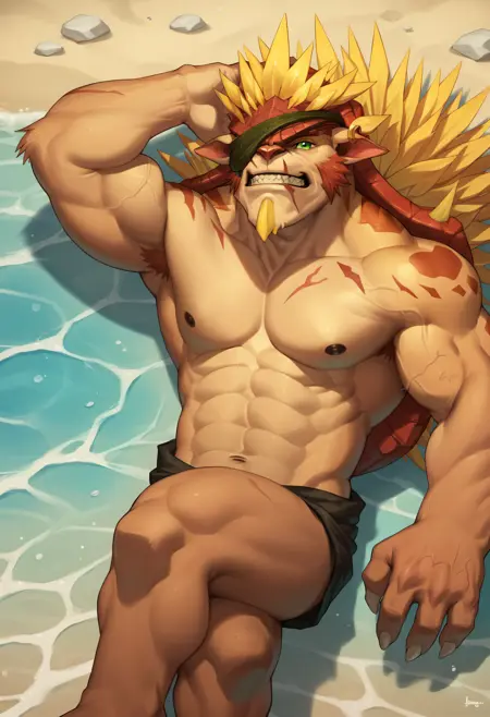 유용한 태그: 이빨, 녹색 눈, 얼굴에 흉터, 3개의 손가락, 발톱