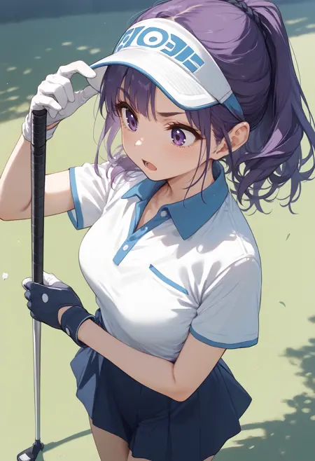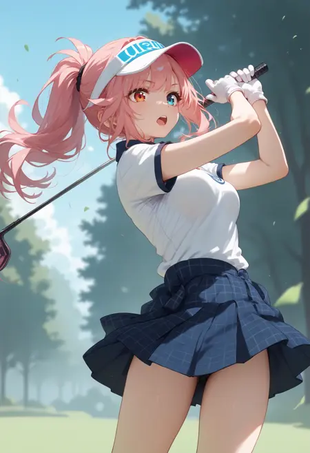 골프 클럽을 잡고 골퍼 같은 자세를 취하는 LoRA입니다.