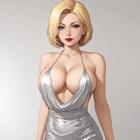 트리거: powergirl, 1girl, 큰 가슴, 금발, 젖가슴 노출, 빨간 망토, 파란 장갑, 옷 노출, 파란 눈, 레오타드, 슈퍼히어로, 벨트, 단발, 터틀넥