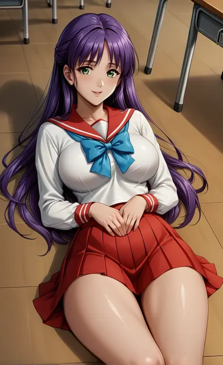 (green eyes, long_hair,purple_hair),half_updo,