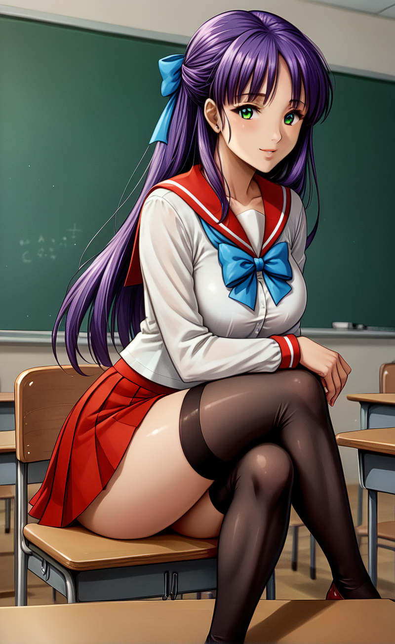 shirt, skirt, long_sleeves, bow, school_uniform, pleated_skirt, serafuku, bowtie, sailor_collar,