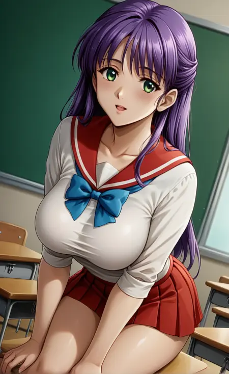 red_skirt, blue_bow, blue_bowtie, red_sailor_collar,