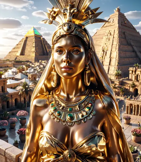 400枚以上の高解像度女性実写画像を用いて、あらゆるポーズでのゴールドボディペイントで追加学習済み。