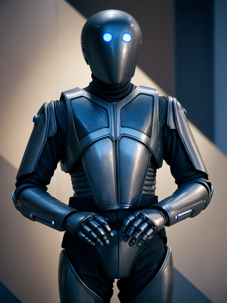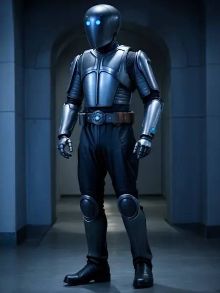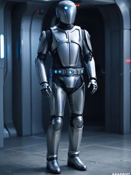 이것은 The Orville 시리즈의 아이작입니다. 다른 옷을 입힌 이미지를 만들고 싶다면, 프롬프트에 "인간형 로봇"이라는 단어를 사용하지 마세요.