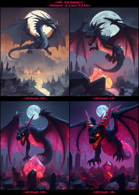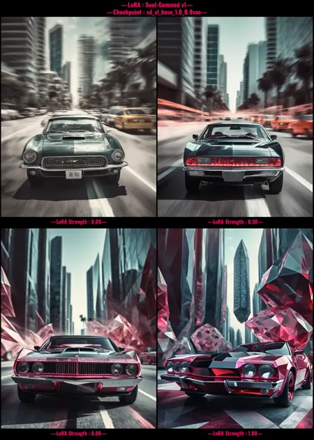 Soul-Gemmedは、LoRA作成の初試みであり、データセットが小さく、このようなLoRAのキャプション付けについて無知であったことを考慮しても、かなりうまく機能します。