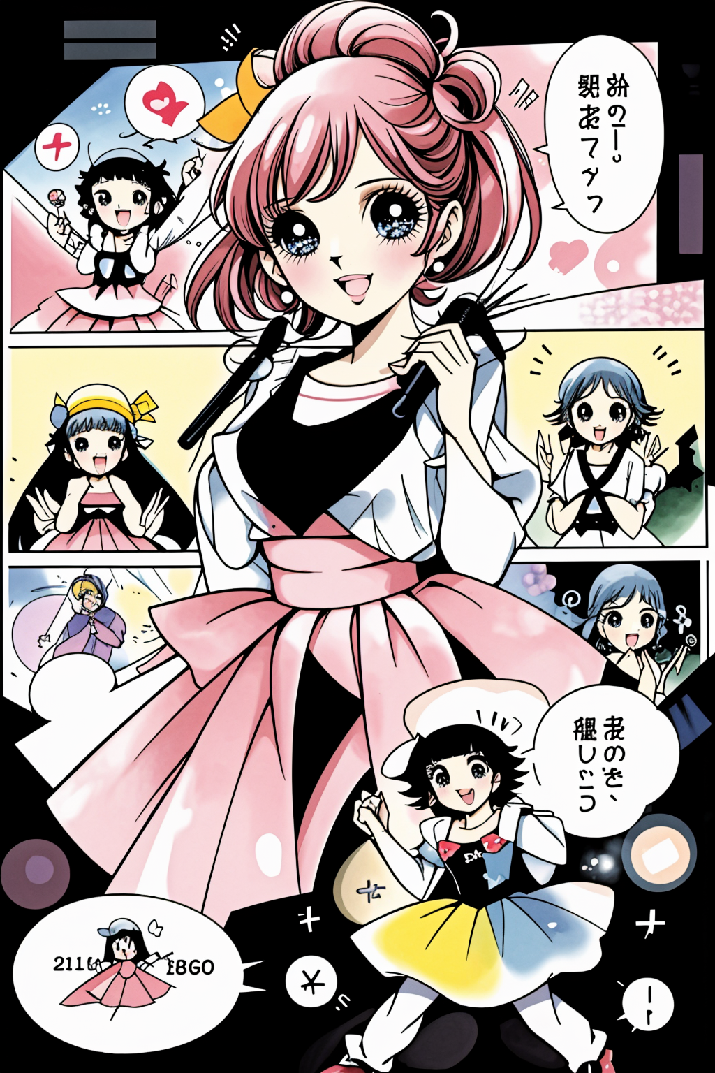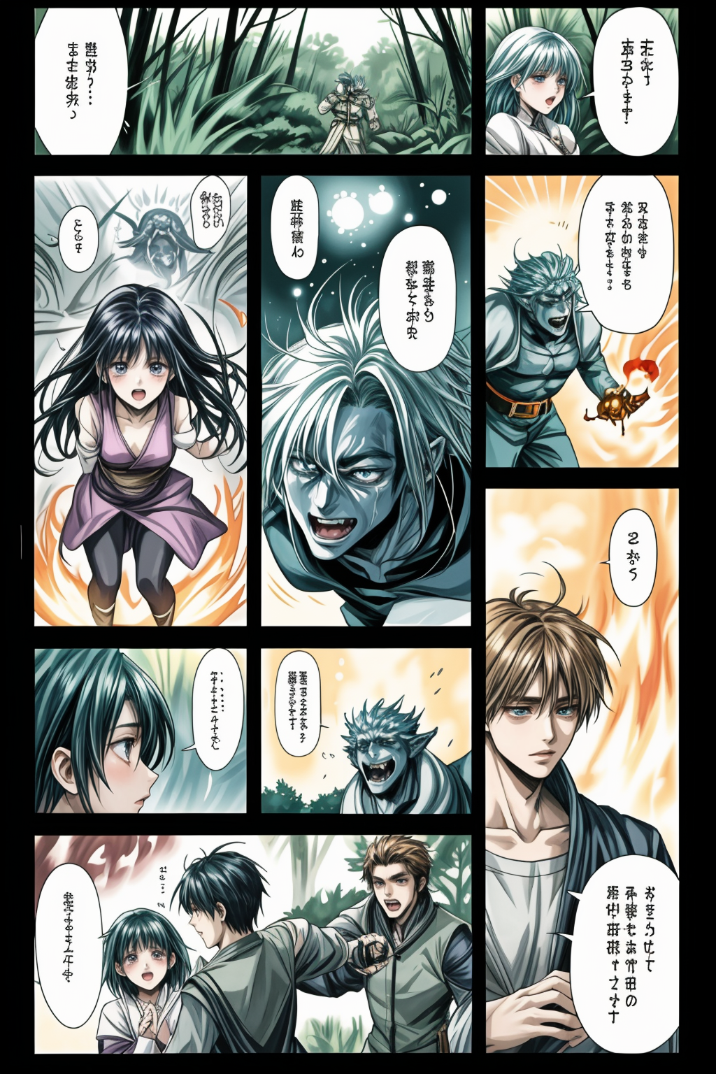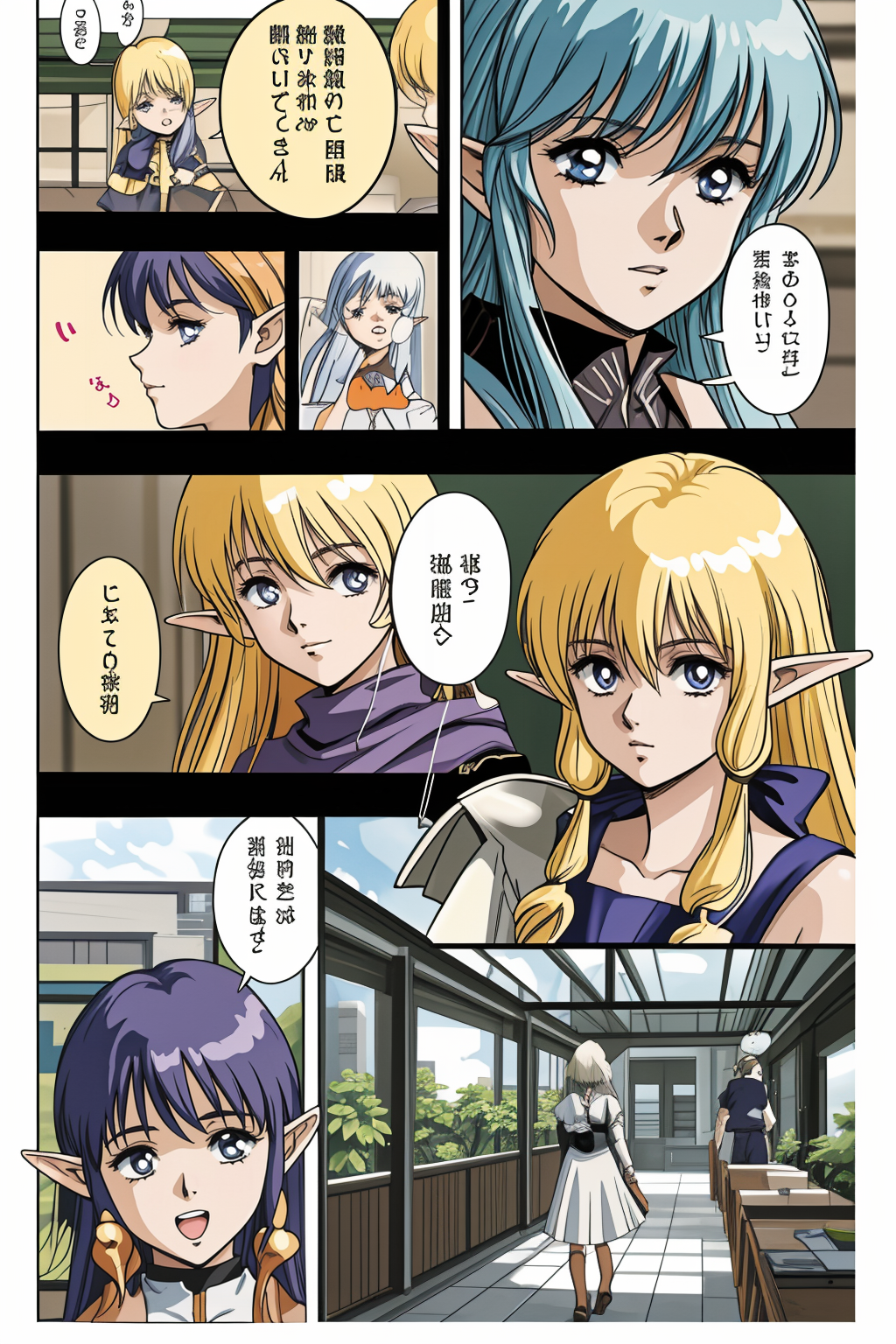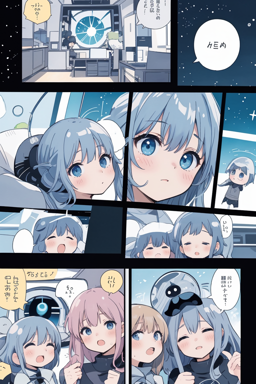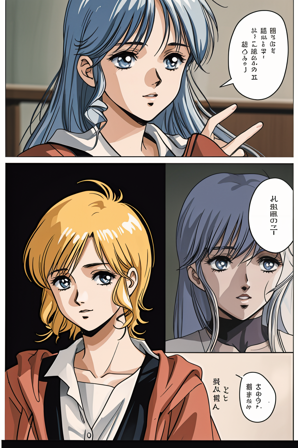 이번에는 컬러 원고를 염두에 두고 조정해 보았습니다. 이 경우, 제 모델에서는 드물게 네거티브 프롬프트를 권장합니다. ckpt 버전과 약간 균형이 다르며 화질은 향상되었지만, 얼굴의 클로즈업이 너무 많아졌습니다. 코마 배치도 다소 단조롭습니다. 이는 향후 과제입니다.