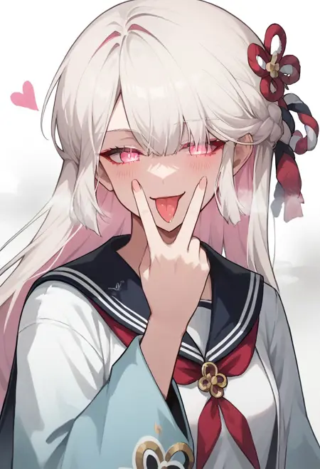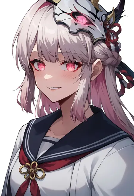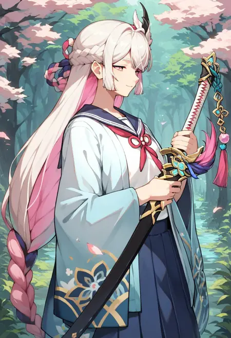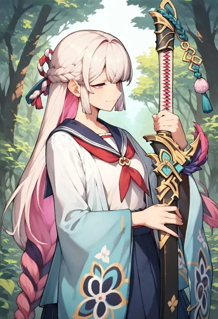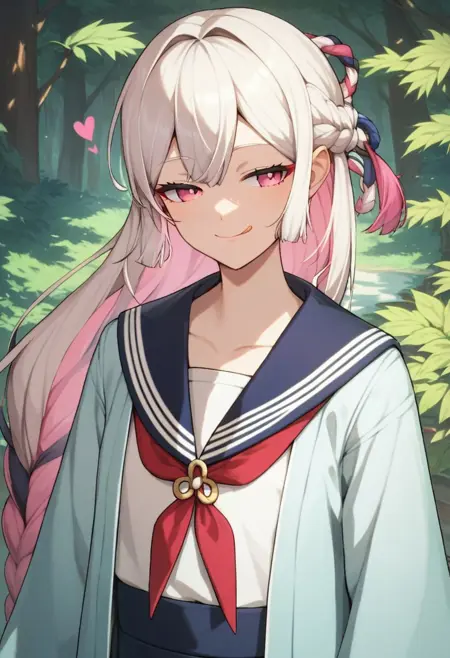 long hair, white hair, pink hair, multicolored hair, braid, pink eyes,