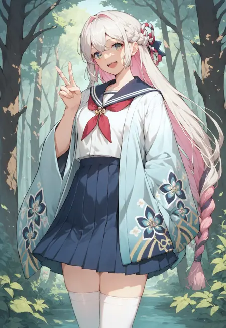 skirt, white thighhighs, japanese clothes, school uniform,