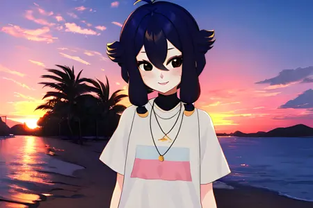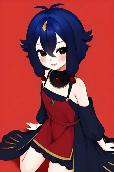 1girl,CrayonVT,solo,looking at viewer,blush,smile,bangs,simple background,black hair,hair between eyes,jewelry,closed mouth,black eyes,[freckles:0.7],blue_hair