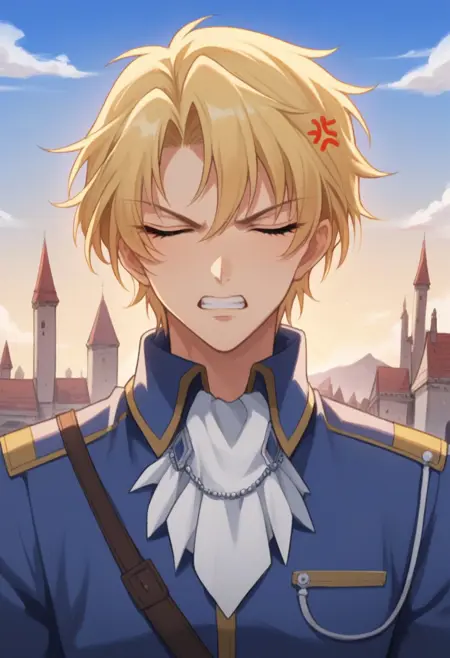 wolfram, solo, blonde hair, uniform, 1boy, male focus, military uniform, boots, military,