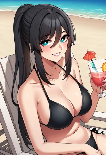 Trigger words: SIA_OWI, black hair, long hair, blue eyes, gradient eyes, white pupil, sidelocks, ponytail,